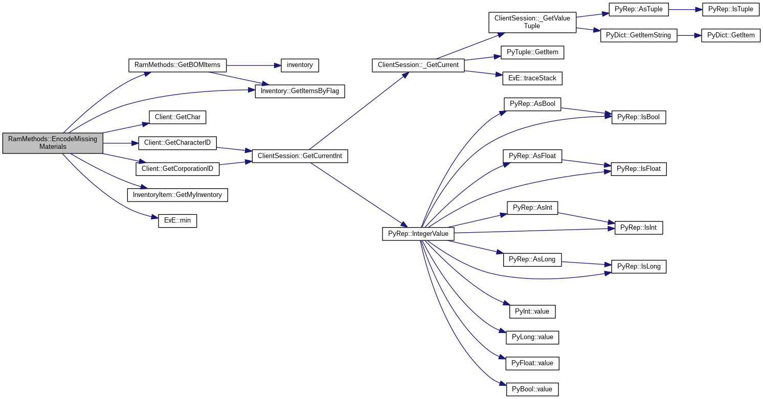| void | EncodeMissingMaterials (const std::vector< EvERam::RequiredItem > &reqItems, const PathElement &bomLocation, Client *const pClient, float materialMultiplier, float charMaterialMultiplier, int32 runs, std::map< int32, PyRep * > &into) |