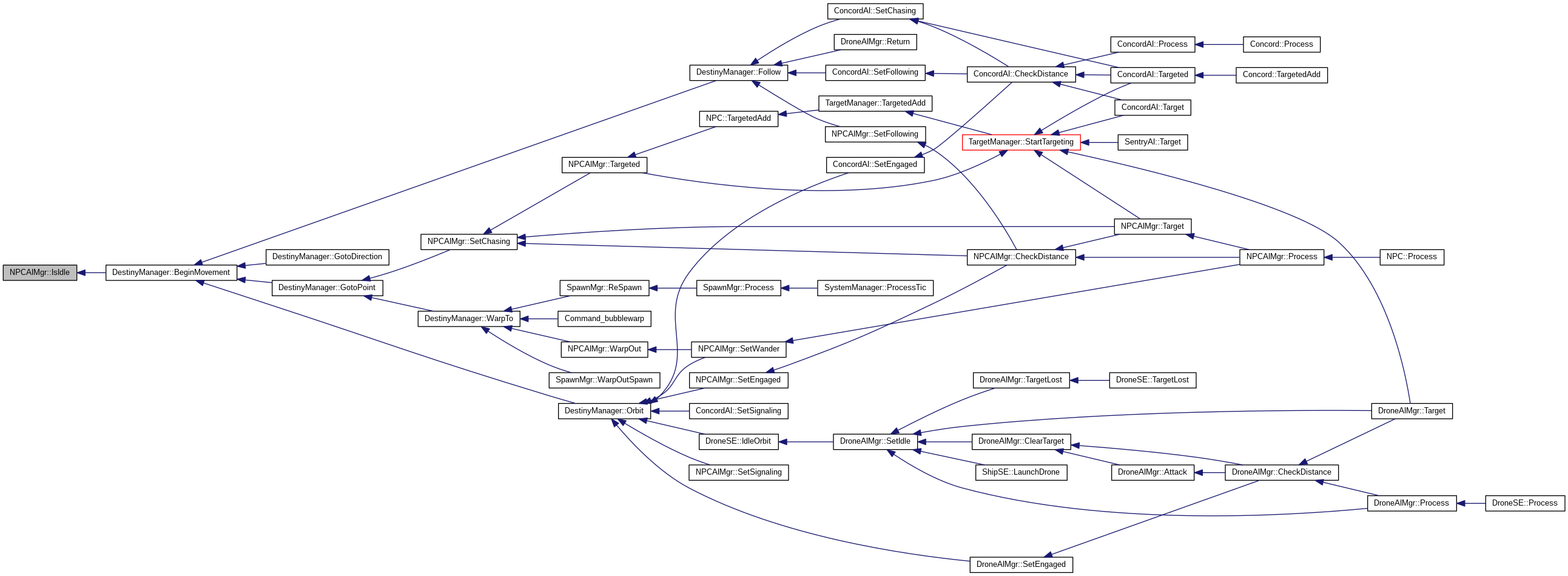 References NPCAI::State::Chasing, NPCAI::State::Engaged, NPCAI::State::Fleeing, NPCAI::State::Following, NPCAI::State::Idle, NPCAI::State::Signaling, NPCAI::State::WarpFollow, and NPCAI::State::WarpOut.