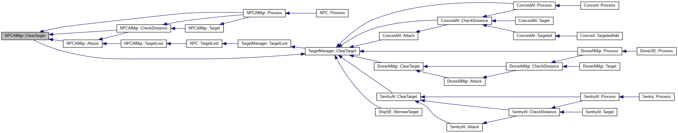 Referenced by Attack(), AttackTarget(), CheckDistance(), ClearTarget(), LaunchMissile(), Process(), SetChasing(), SetEngaged(), SetFleeing(), SetFollowing(), SetIdle(), SetSignaling(), SetWander(), Target(), Targeted(), TargetLost(), and WarpOut().