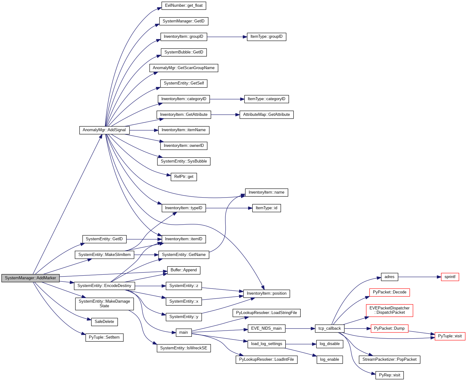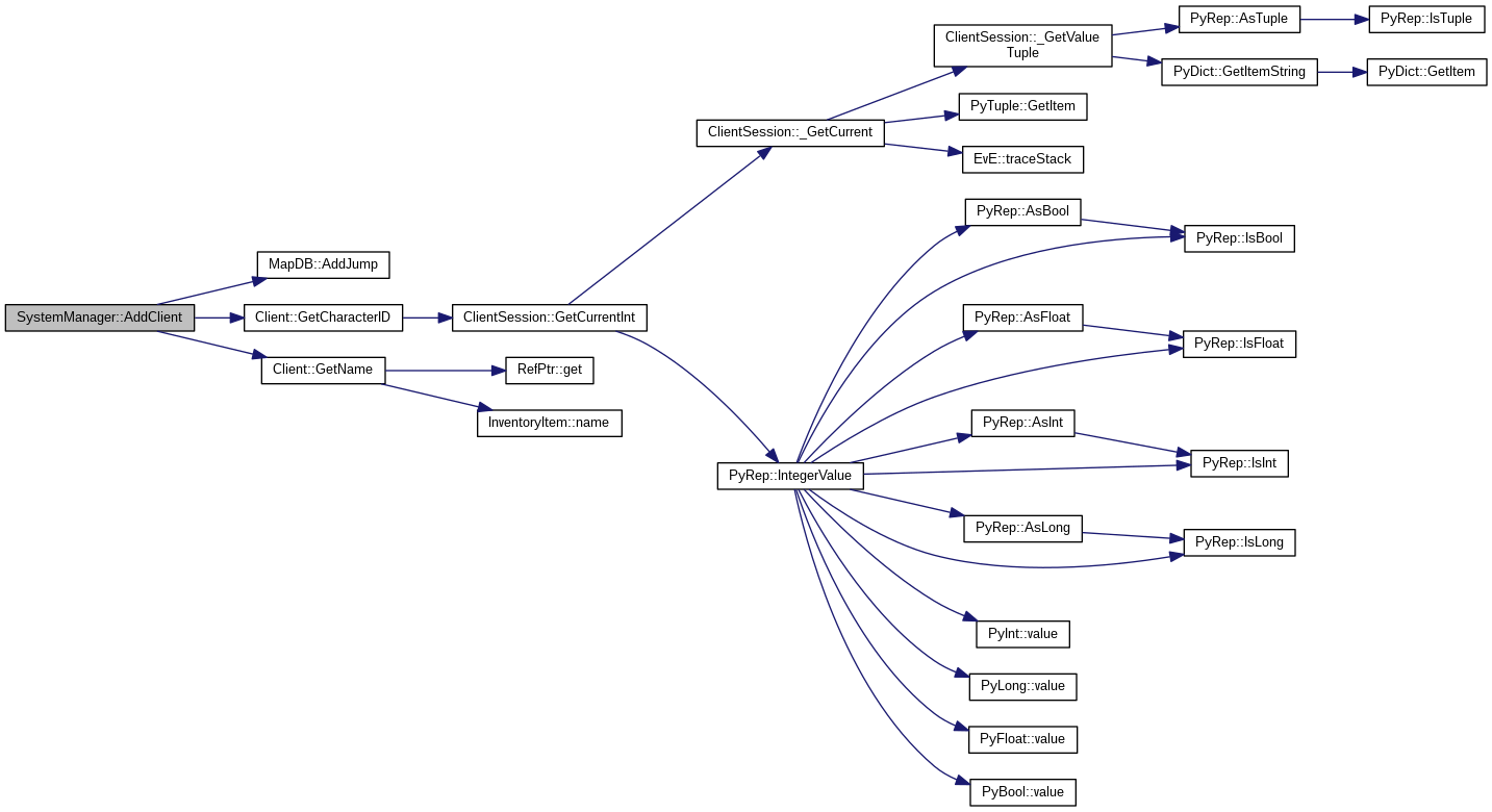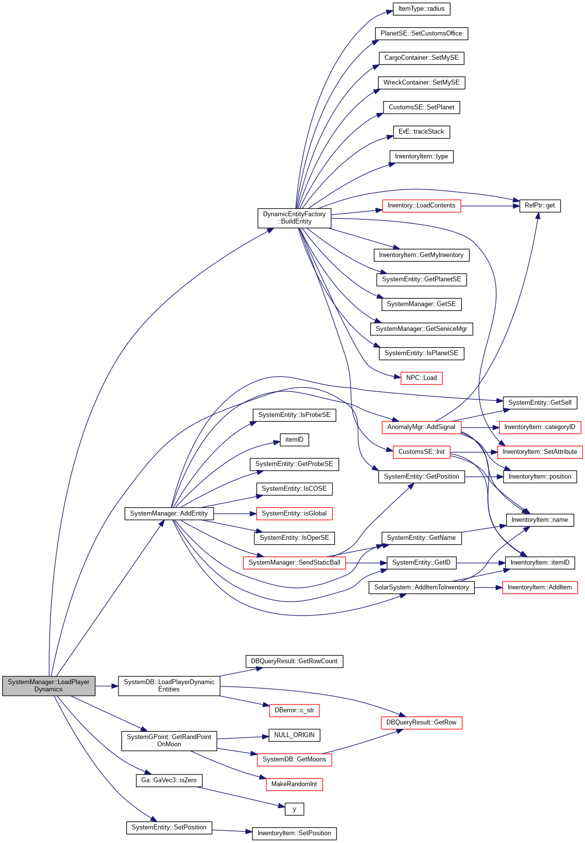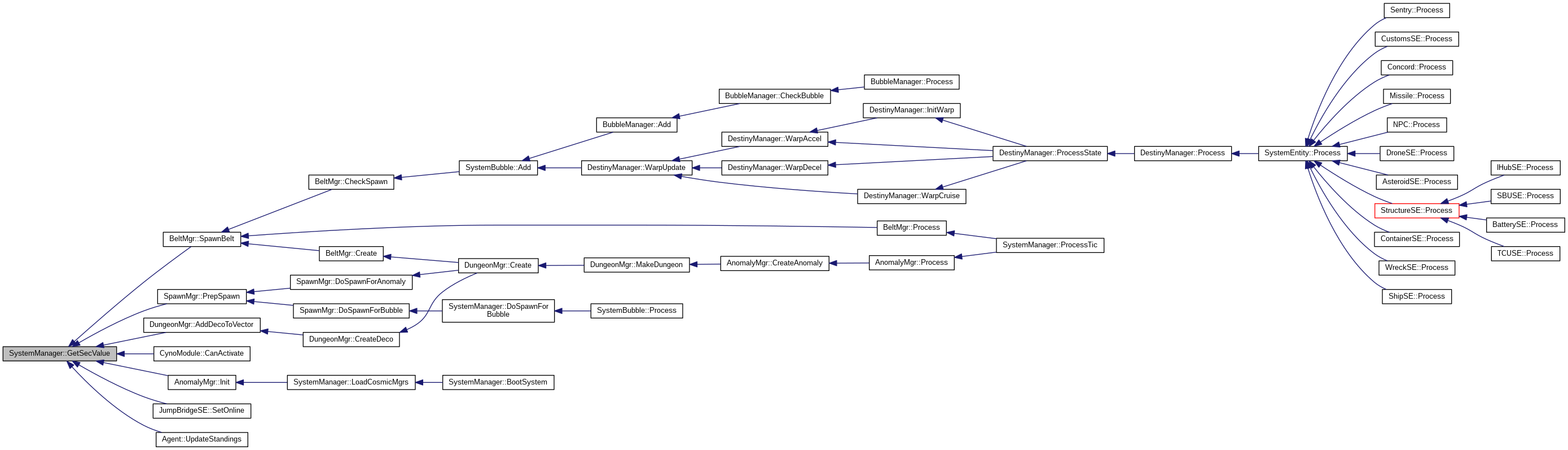 Referenced by AddBounty(), AddClient(), AddEntity(), AddNPC(), BootSystem(), BuildDynamicEntity(), DoSpawnForBubble(), GetAllEntities(), GetConstellationID(), GetID(), GetName(), GetNameStr(), GetRegionID(), GetSpawnBubbles(), GetSystemSecurityClass(), GetSystemSecurityRating(), LoadCosmicMgrs(), LoadPlayerDynamics(), LoadSystemDynamics(), LoadSystemStatics(), MakeSetState(), ManipulateTimeData(), PayBounties(), RemoveClient(), RemoveItemFromInventory(), RemoveNPC(), RemoveSpawnBubble(), SetDockCount(), SystemManager(), UnloadSystem(), UpdateData(), and ~SystemManager().