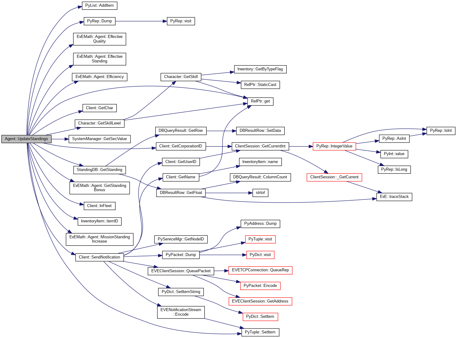 References _log, Agents::Type::Aura, EvESkill::Connections, AgentData::corporationID, EvESkill::CriminalConnections, EvESkill::Diplomacy, EvEMath::Agent::EffectiveStanding(), AgentData::factionID, RefPtr< X >::get(), Client::GetChar(), Character::GetSkillLevel(), StandingDB::GetStanding(), EvEMath::Agent::GetStandingBonus(), InventoryItem::itemID(), AgentData::level, m_agentData, m_agentID, EvE::max(), EvE::min(), AgentData::name, Agents::Type::Research, and AgentData::typeID.