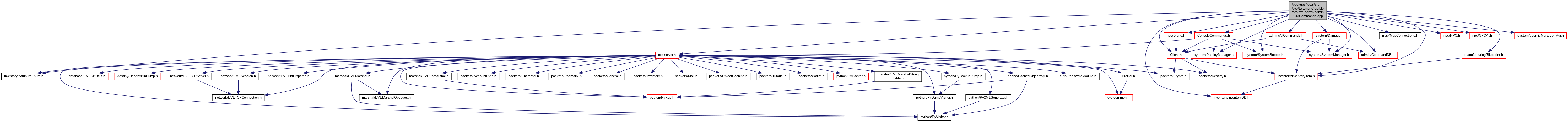 #include "eve-server.h"#include "Client.h"#include "ConsoleCommands.h"#include "admin/AllCommands.h"#include "admin/CommandDB.h"#include "inventory/AttributeEnum.h"#include "inventory/InventoryDB.h"#include "inventory/InventoryItem.h"#include "manufacturing/Blueprint.h"#include "map/MapConnections.h"#include "npc/Drone.h"#include "npc/NPC.h"#include "npc/NPCAI.h"#include "system/Damage.h"#include "system/DestinyManager.h"#include "system/SystemManager.h"#include "system/SystemBubble.h"#include "system/cosmicMgrs/BeltMgr.h"