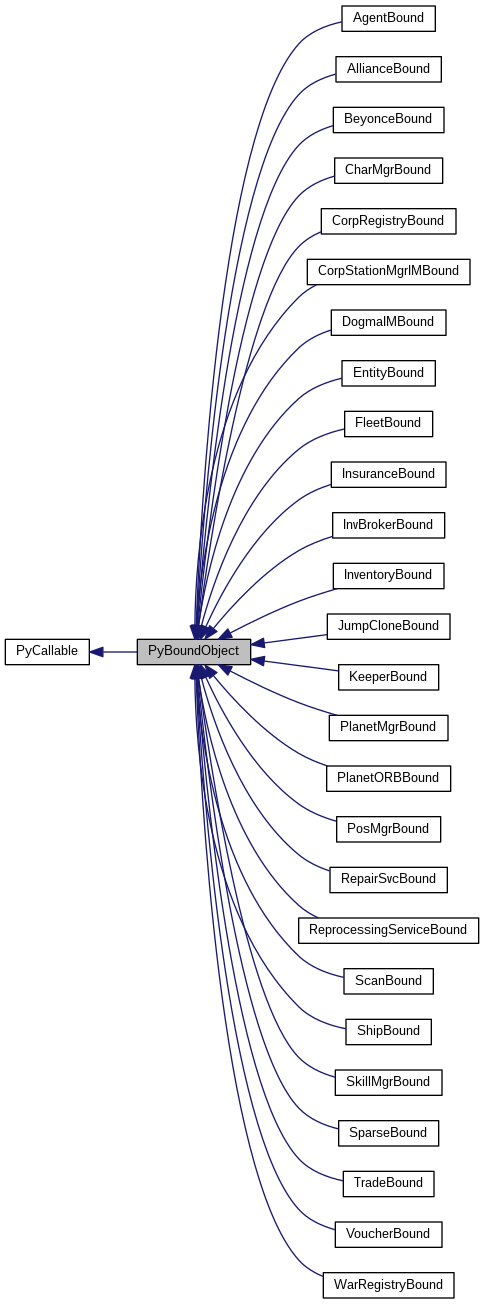 Implemented in PlanetMgrBound, BeyonceBound, CorpStationMgrIMBound, DogmaIMBound, ScanBound, ShipBound, PosMgrBound, InvBrokerBound, TradeBound, JumpCloneBound, KeeperBound, WarRegistryBound, InsuranceBound, CharMgrBound, ReprocessingServiceBound, RepairSvcBound, PlanetORBBound, VoucherBound, SkillMgrBound, EntityBound, InventoryBound, AgentBound, AllianceBound, FleetBound, CorpRegistryBound, and SparseBound.